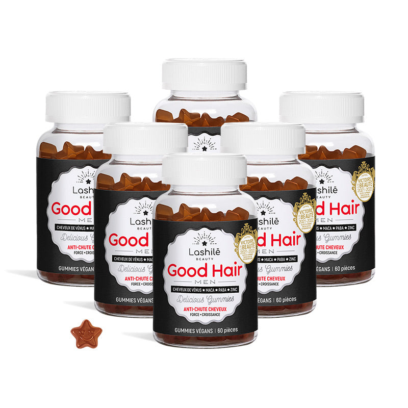 Sirop de blé - Sucre - Fructo-oligosaccharides - Extrait sec de partie aérienne de cheveux de Venus (Adiantum capillus-veneris L.) - Agent gélifiant : pectine - Agent acidifiant : acide citrique - Caramel - Citrate de zinc - Poudre de racine de maca (Lepidium meyenii Walpers) - Acide para-aminobenzoïque (PABA) - Arôme naturel - Poudre de partie aérienne de prêle (Equisetum arvense L.) - antioxydant : extrait riche en tocophérols - agent d'enrobage : cire de camauba, huiles végétales (contient huiles de noix de coco et de colza) et antioxydant : alpha-tocophérol - chlorhydrate de pyridoxine (vitamine B6)